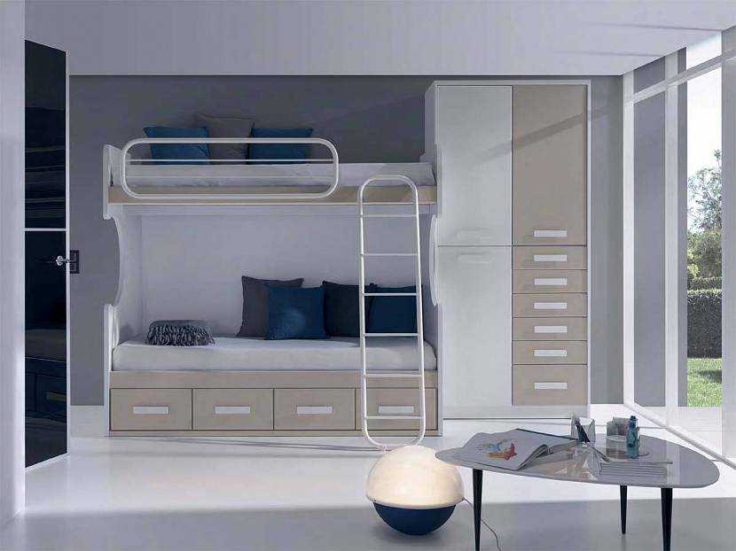 Есть и совсем необычные решения – шкафы, которые служат опорой для верхнего спального места. Это невысокие конструкции, наверху которых обустраивают кровать-лежанку с барьерными перилами для соблюдения норм безопасности, исключение случайного падения с высоты. Особенно такие модели подходят для детских.