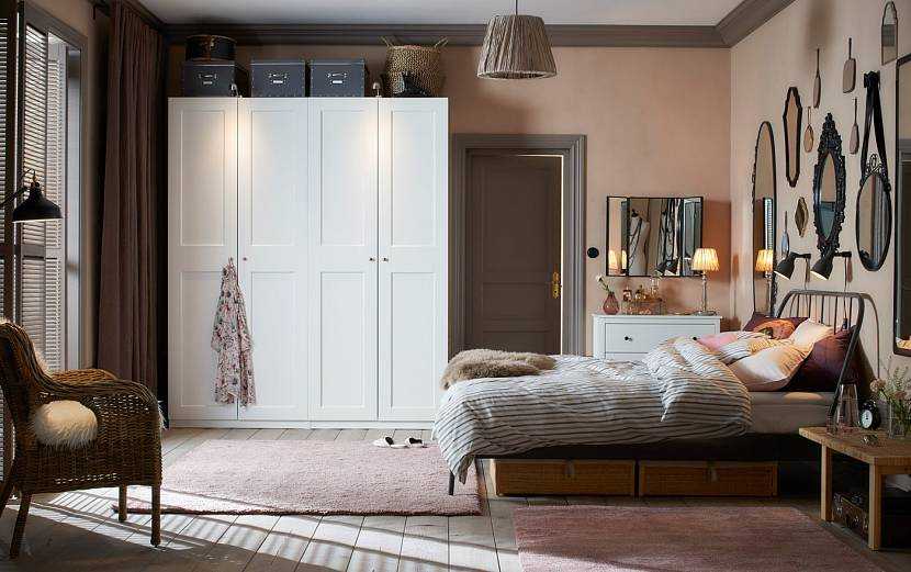 Спальня в силе эклектика с белым шкафом-гардеробом PAX Источник ikea.com