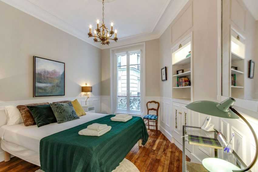 Использование большой люстры — решение, которое позволит осветить все помещение, не загромождая его. Чтобы было удобно выключать лампы перед сном, рекомендуется приобрести люстру, регулируемую пультом. Обычно в таких устройствах можно менять интенсивность освещения, подготавливая глаза ко сну. Более бюджетный вариант — бра у изголовья. Светильник легко выключить, при этом он подходит для вечернего чтения.