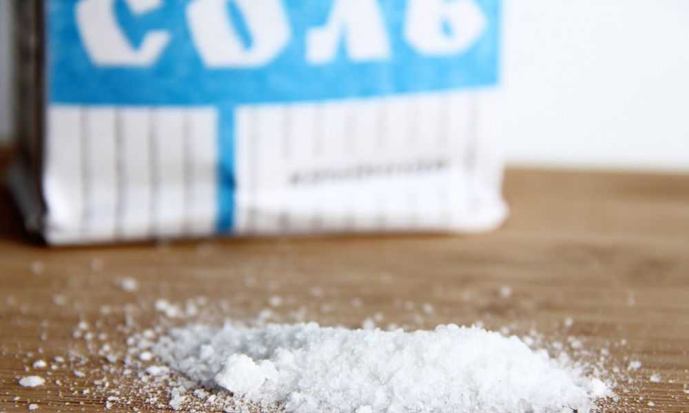 - В литре теплой воды разводят 2 столовые ложки соли.