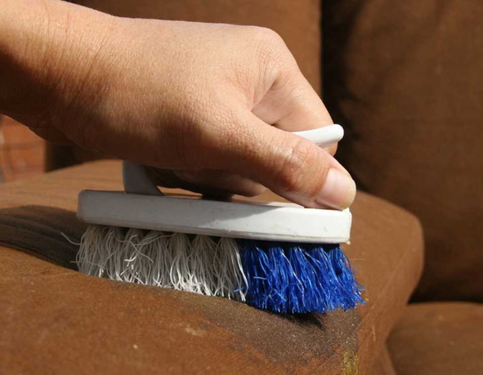 С помощью специальной насадки (обычно она представляет собой кисточку или мягкую щёточку) произвести чистку обивки. Такой способ позволит не только глубже проникнуть чистящим компонентам, но и бережно удалит их остатки.