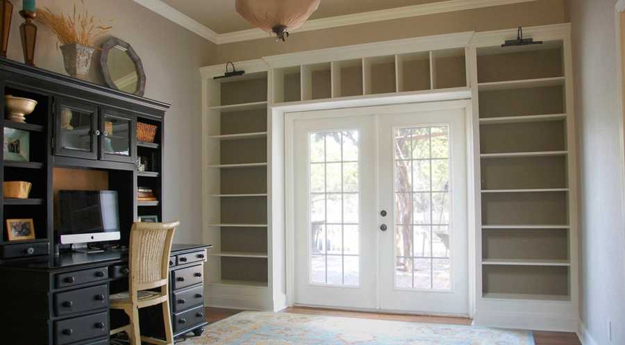 Оформление входа стеллажом выглядит очень интересно и уютно. Это может быть как стандартный вход, так и овальной формы. Стеллаж буквой «П» вокруг зоны телевизора — очень необычный ход, который будет смотреться оригинально. Угловой стеллаж хорошо смотрится как в гостиной, так и в обычной комнате. Необычные идеи для вдохновения на создание уюта в вашем доме вы можете почерпнуть из представленной фотогалереи.