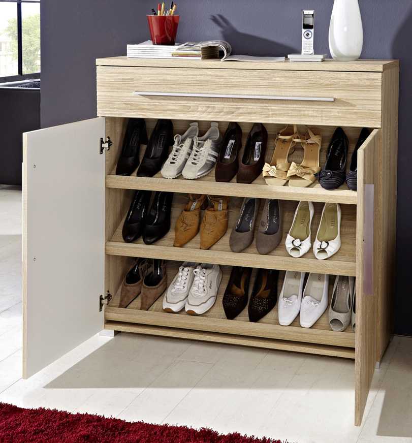 Собственно, обувница необязательно будет отдельной конструкцией, ведь она может быть составной частью более крупного шкафа. Во многих случаях она представляет собой выдвижной нижний ящик, что позволяет получить быстрый доступ к обуви в любой момент. В то же время она занимает меньше места и прячет имущество от пыли и посторонних взглядов в закрытом хранилище. В модных современных моделях мебели конструкторы иногда отказываются от примитивной концепции выдвижного ящика, отдавая предпочтение раскладной и складной конструкции со скошенными полками.
