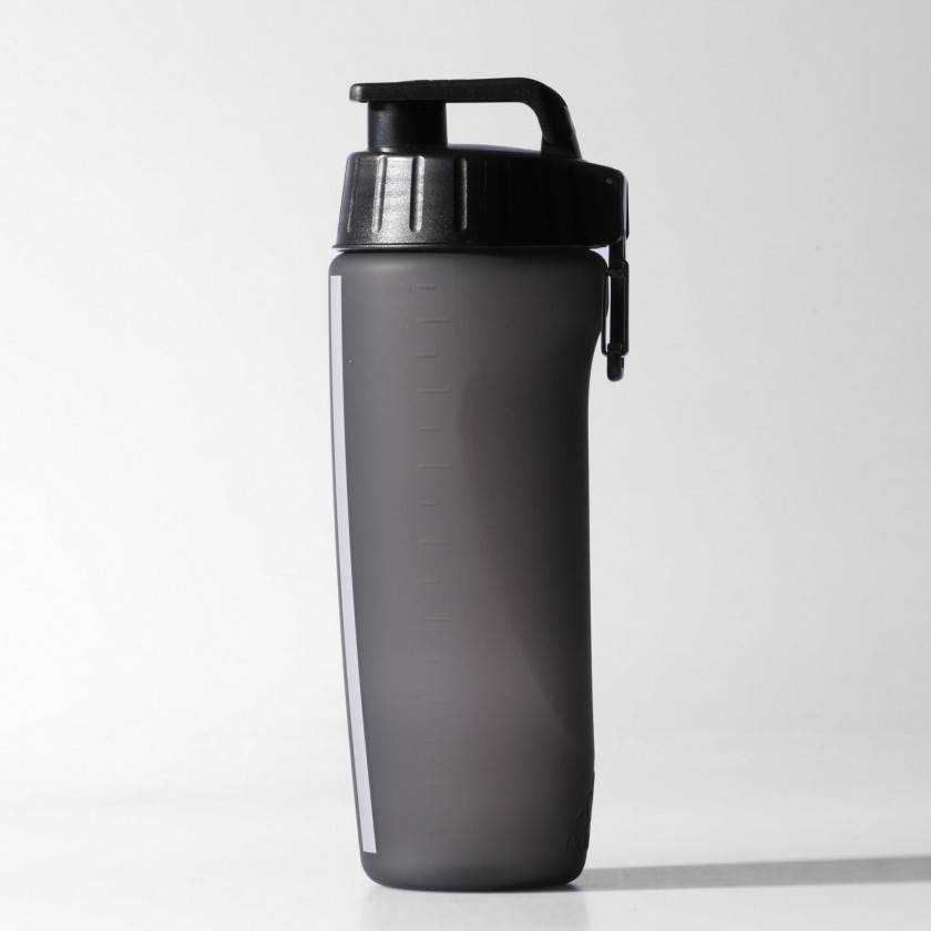 Замыкает нашу подборку изделие от бренда Reebok классической эргономичной конструкции. В производстве бутылки используется пластик самого высокого качества, в который добавляют специальное вещество для защиты от ультрафиолетовых лучей, из-за чего вода не нагревается и не теряет своих полезных свойств. Объем бутылки оптимальный — 750 миллилитров. Благодаря удобной шкале объема на задней стороне бутылку можно наполнять именно на то количество воды, которое нужно. На небольшой пластиковой крышке расположена соска с надёжным клапаном, из-за чего вода не проливается при тряске в сумке.