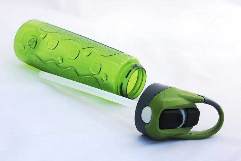 - пластик — считается наиболее частым видом материала для спортивных бутылок. Такие изделия имеют доступную стоимость и сохраняют жидкость свежей длительное время;