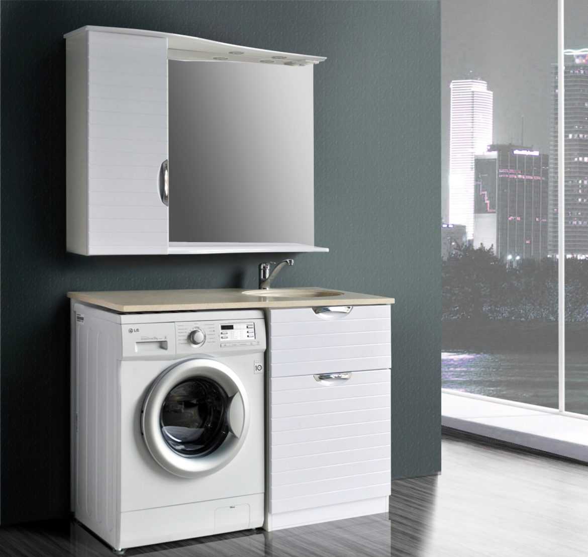 - С раковиной — это решение позволяет максимально выгодно использовать пространство в ванной комнате или кухне — помещении, где есть мойка.