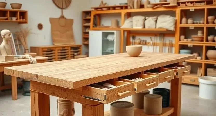 Организация хранения инструментов и материалов – важный аспект обустройства рабочего места. Столы для лепки с ящиками и полками позволяют держать все необходимое под рукой, экономя время и пространство. Ящики могут быть разного размера и глубины, что позволяет хранить как мелкие инструменты, так и большие запасы глины. Полки можно использовать для размещения книг, журналов и других материалов. Важно, чтобы ящики и полки были легкодоступными и не мешали работе. Я всегда стараюсь держать все инструменты на своих местах, чтобы не тратить время на поиски.