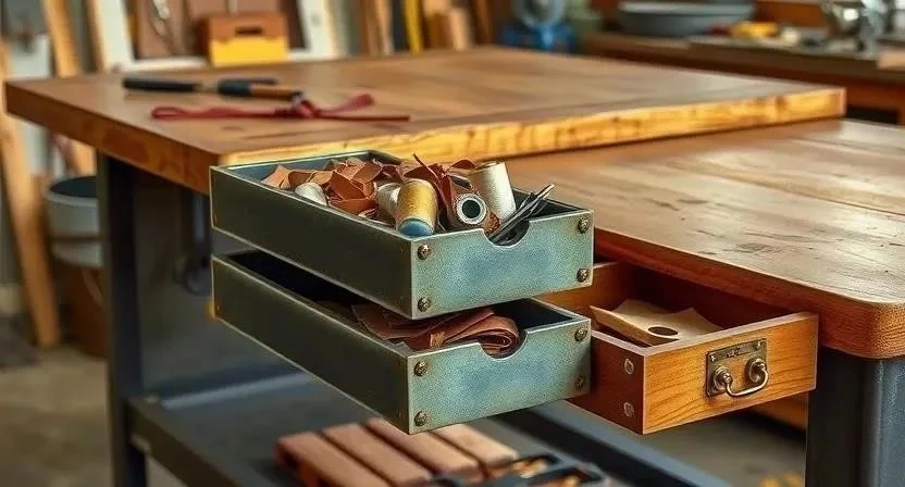 Ответ: Наличие ящиков и полок значительно повышает удобство работы, так как позволяет хранить инструменты и материалы под рукой.