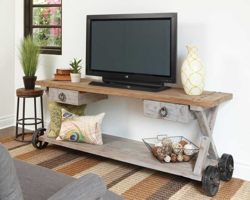 Размещение телевизоров на тумбах имеет немало позитивных моментов: