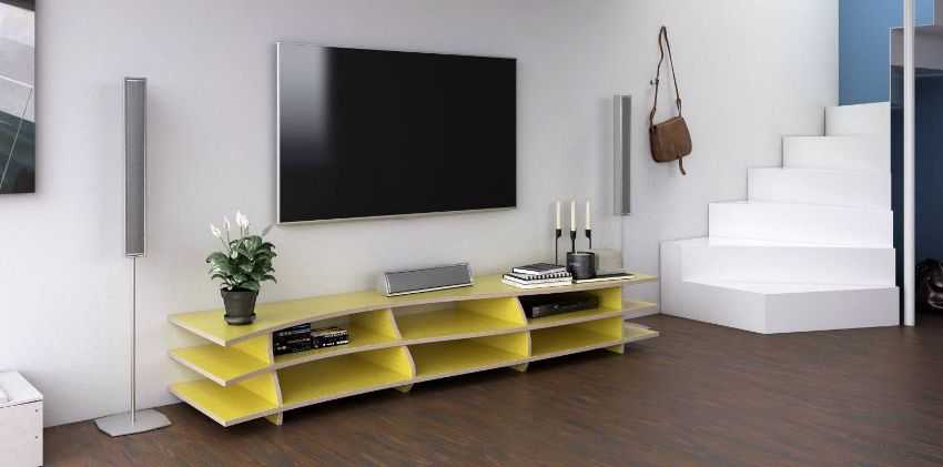 Широкие. Подобные изделия являются очень распространенными. Многие потребители останавливают свой выбор именно на этой разновидности подставок. Размер тумбы для телевизора такого типа определяет ее эксплуатационное назначение. Лучше всего такие конструкции смотрятся в просторных помещениях, которые не имеют проблем со свободной площадью.