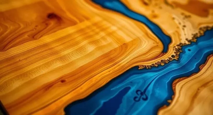 - Комбинированная столешница (дерево + смола)
