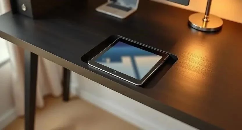 - Встроенные подставки: Подставка является неотъемлемой частью столешницы. Обычно это наклонная поверхность с углублением для планшета.