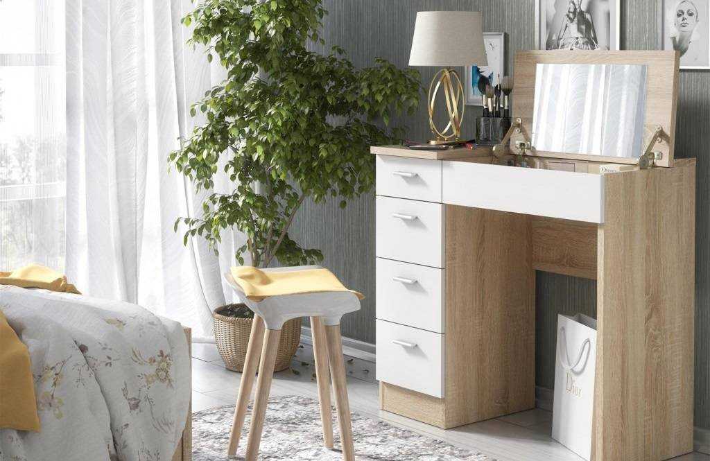 При выборе расположения в квартире будуарного столика, как правило, предпочтение отдается спальной комнате. Но среднестатистическое жилье редко отличается большим количеством свободного пространства. Поэтому особой популярностью в таких ситуациях пользуются следующие модели: