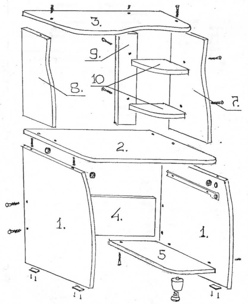 Нанесите разметку на ЛДСП, карандашом или тонким маркером. Прямые линии распиливать лучше на стационарном циркулярном станке с мелкозубчатой режущей частью. Кривые линии выполняются электрическим лобзиком. Очень удобно в интерьере смотрится трюмо угловое.