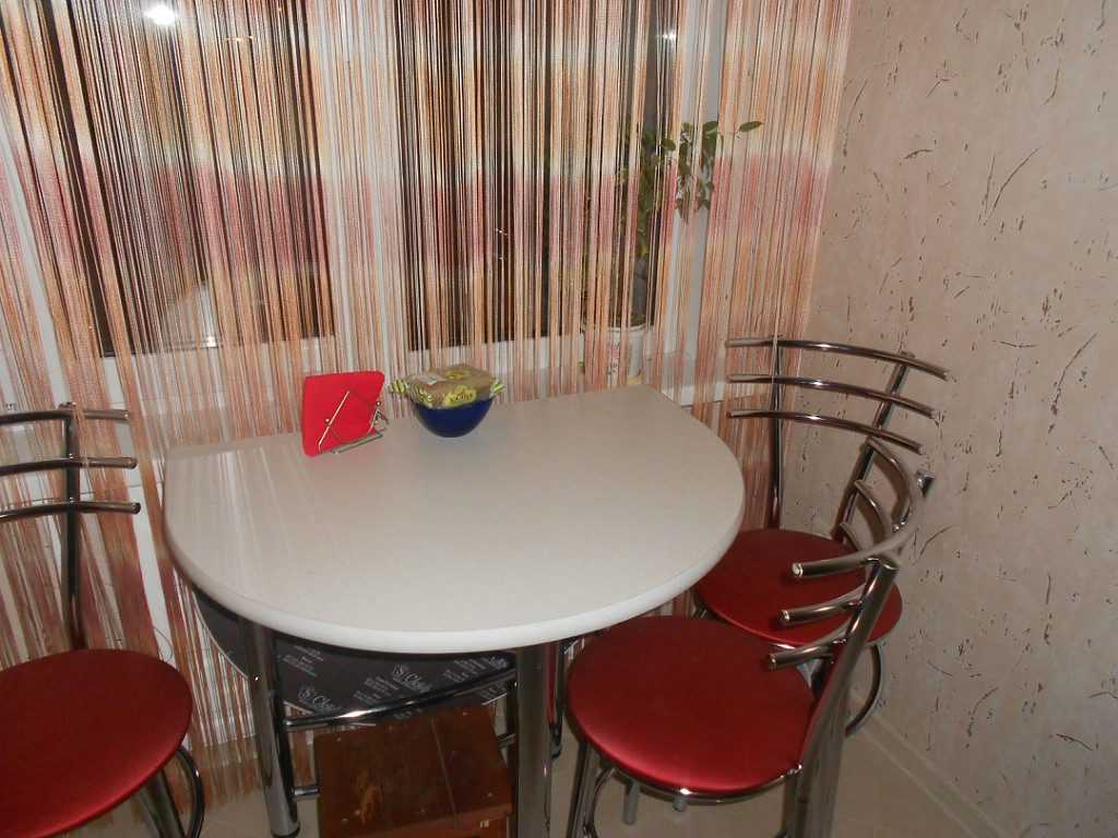 Для самых маленьких кухонь можно посоветовать складной стол, который прикручивают к подоконнику или стене. Когда настает время приятия пищи, его поднимают, а после – возвращают в привычное положение, чтобы он не мешал свободному передвижению по кухне. Как правило, вместе с такими столами используют табуретки, которые также можно сложить, или установить друг на друга.