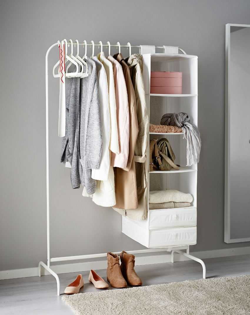 С помощью подобной конструкции очень просто организовать не только верхнюю одежду, но также обувь и необходимые аксессуары: шапки, шарфы, сумки и рюкзаки