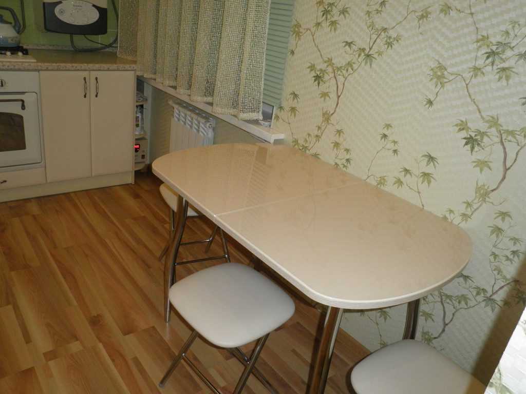 Но дерево не всегда хорошо переносит температурные перепады и повышенную влажность на кухне. Как правило, такая мебель не складывается и если вам надо экономить пространство, то целесообразно выбирать табуреты.