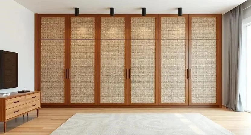 | Скандинавский | Лен, хлопок | Белый, серый, бежевый | Шкаф с льняными фасадами в светлой спальне |