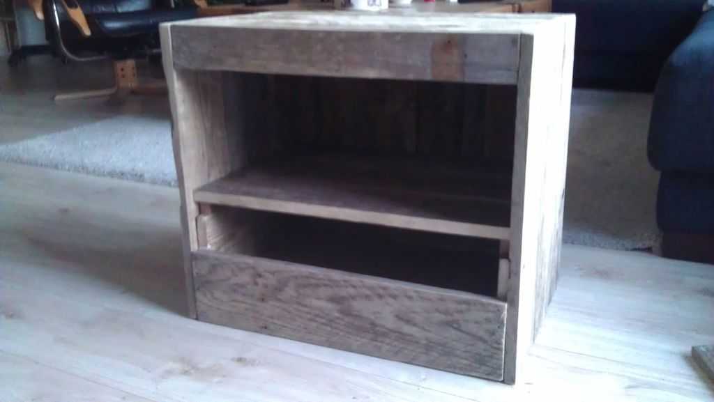 В качестве материала для изготовления простейшей конструкции тумбочки можно использовать старые деревянные поддоны. |