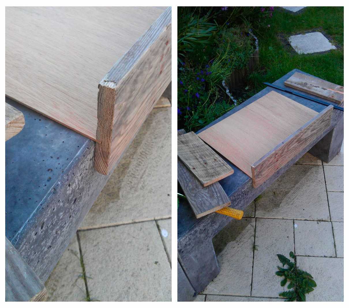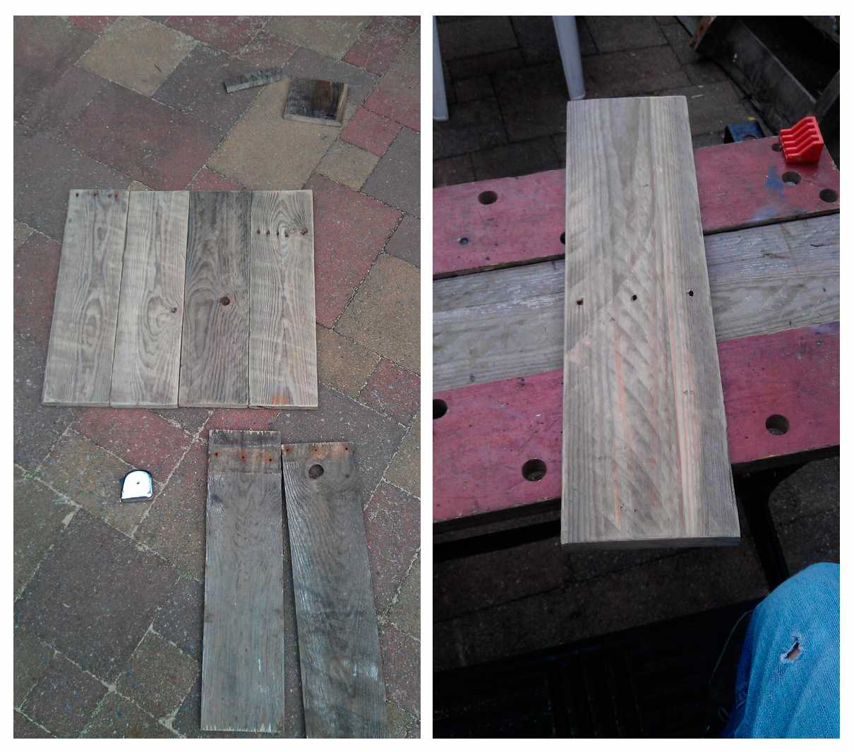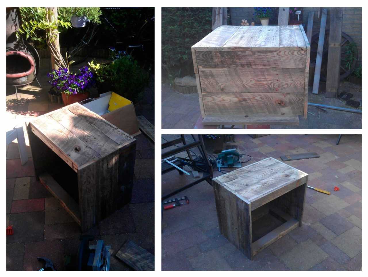Переднюю и боковые части также собирают из досок, вырезанных с поддона. |