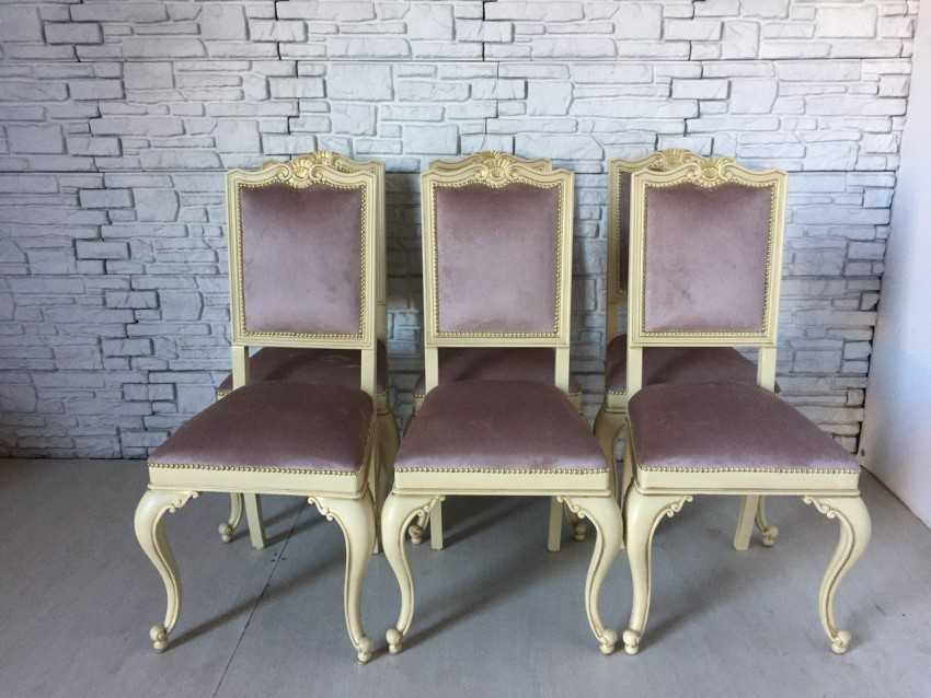 - Барокко. Стулья больше походят на кресла. Каркас из древесины ценных пород украшает замысловатая резьба, позолота. Обивка выполнена из дорогих тканей. Допускается сочетание контрастных оттенков и пастельных цветов.