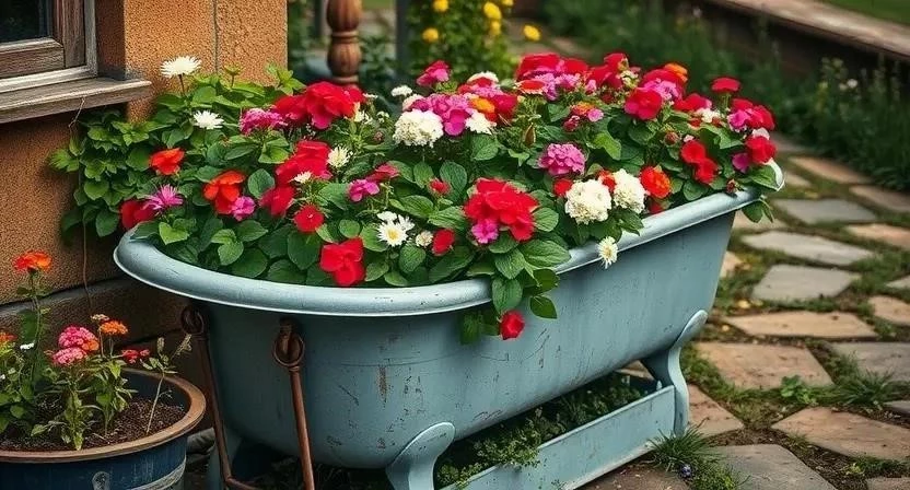 - Старые предметы: Ванны, бочки, чемоданы, шины – уникальность, возможность вторичного использования. Могут требовать предварительной подготовки и обработки.