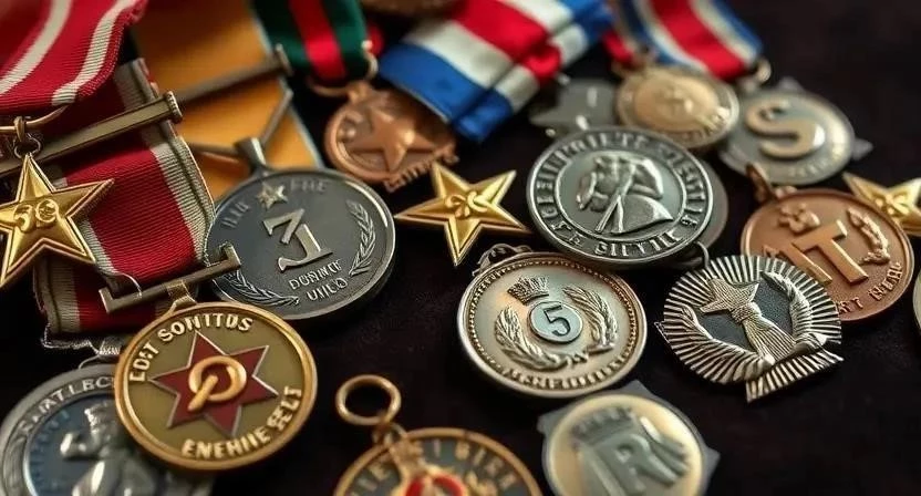 - Военные медали: отмечали участие в боевых действиях.