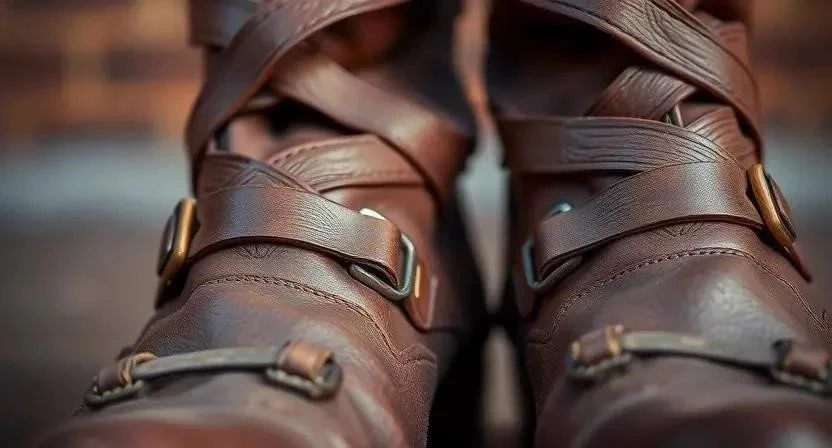 - Металлическая фурнитура: Пряжки, молнии, шпоры, добавляющие сапогам брутальности и стиля.