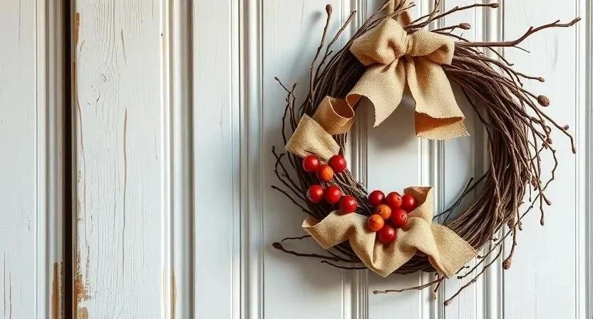 - Венки из веток – простые и элегантные, идеально подходят для рустикального стиля.