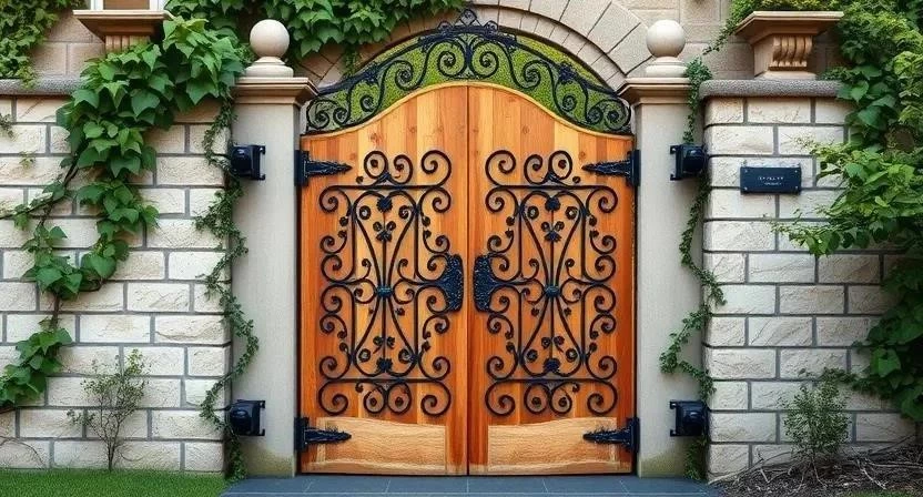 - Комбинированные ворота: Сочетают в себе преимущества разных материалов, например, кованый металл и дерево.