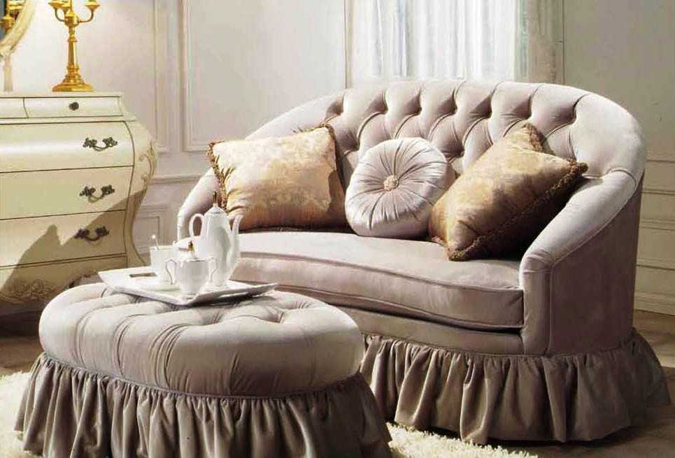 барокко — такой красивый пуфик имеет деревянный каркас, а его сиденье обито бархатом или замшей;