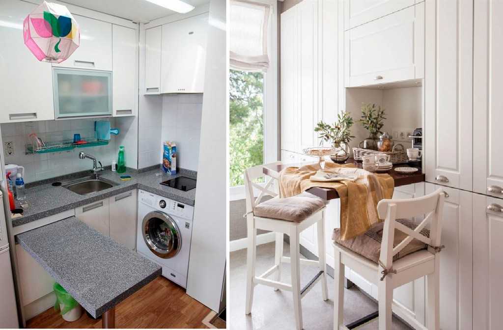Отличная идея для небольших кухонь, позволяющая сохранить как можно больше свободного места, сделать кухню компактной и эффектной.