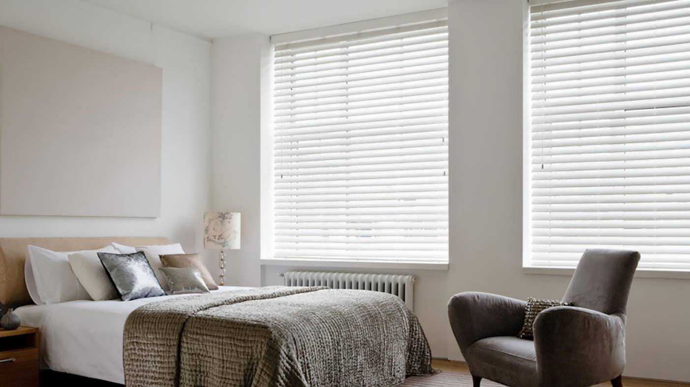 Горизонтальная модель белого цвета хорошо сочетается с портьерами из ткани любой фактуры, цвета и рисунка.