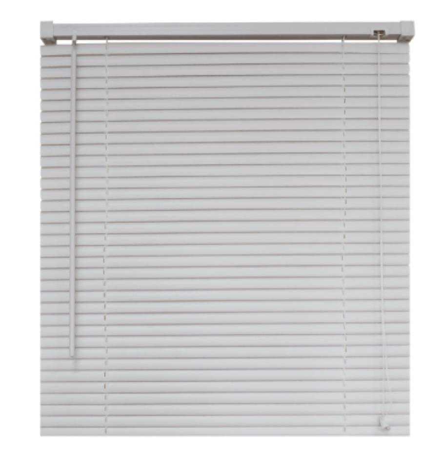 Изделие белоснежного цвета не имеет рисунка. Общие размеры – 50х155 см, ширина одной ламели составляет 2.5 см. Модель не обеспечивает 100% светонепроницаемость, но солнечные лучи задерживает.
