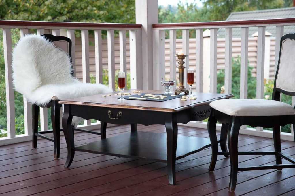 - Лоза. Такие столики выглядят очень эффектно, настраивают на расслабление и отдых, особенно если его расположить рядом с креслом-качалкой.