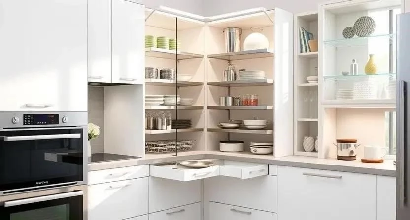 Ответ: Можно установить карусельные полки, выдвижные ящики или специальные угловые органайзеры.