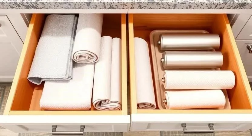 6. Используйте корзины для хранения кухонных полотенец.