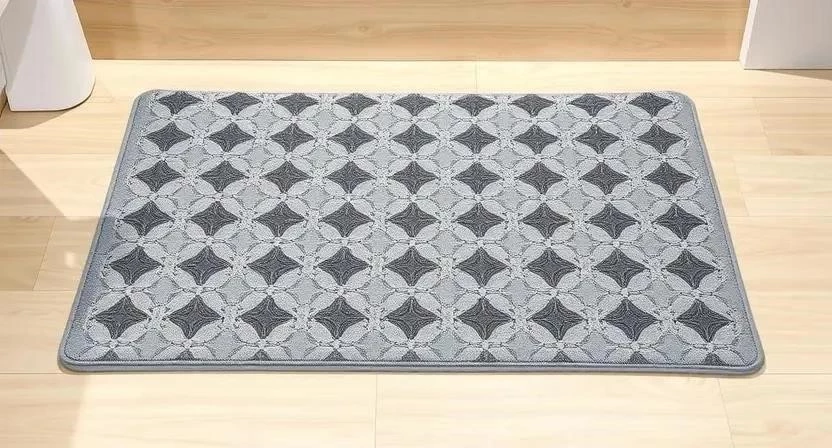 - Коврики с резиновым основанием: Обеспечивают хорошее сцепление с полом, но могут скользить на гладкой плитке.