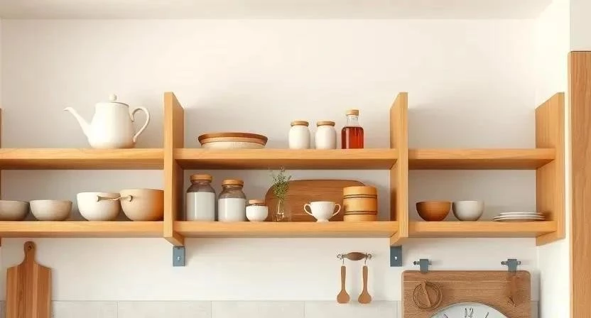 Деревянные полки – это практичное и эстетичное решение для хранения кухонной утвари. Полки могут быть: