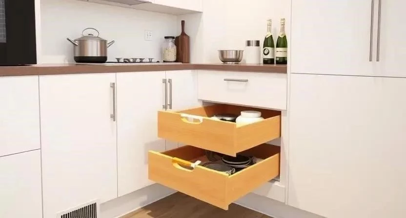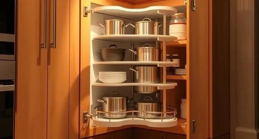 Если вы не хотите устанавливать угловые шкафы и карусели, существуют альтернативные решения для организации хранения на кухне. Выдвижные ящики – это удобное и практичное решение. Рейлинги позволяют хранить кухонные принадлежности на открытых полках. Полки-карусели – это компактное решение для хранения посуды и других предметов. Вертикальные разделители позволяют разделить пространство шкафа на отдельные секции. Я однажды использовал вертикальные разделители для хранения крышек от кастрюль. Это оказалось очень удобным и практичным решением.