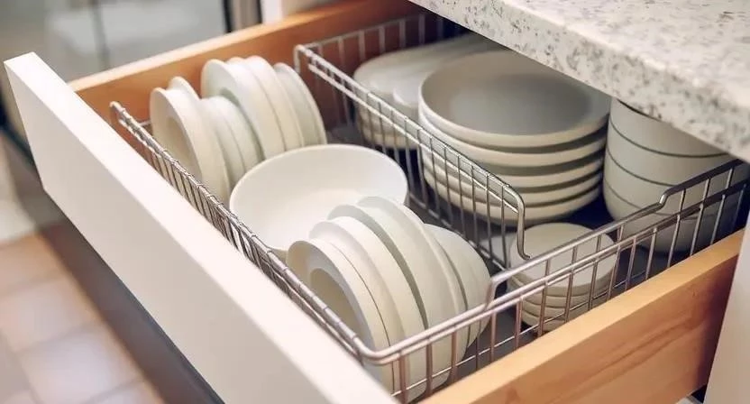 1. Используйте вертикальные подставки для тарелок, чтобы сэкономить место.