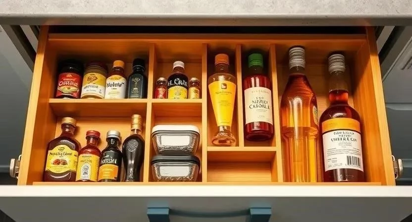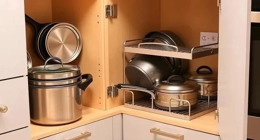 Угловые ящики часто остаются неиспользованными из-за неудобной формы. Специальные органайзеры помогут эффективно использовать это пространство.