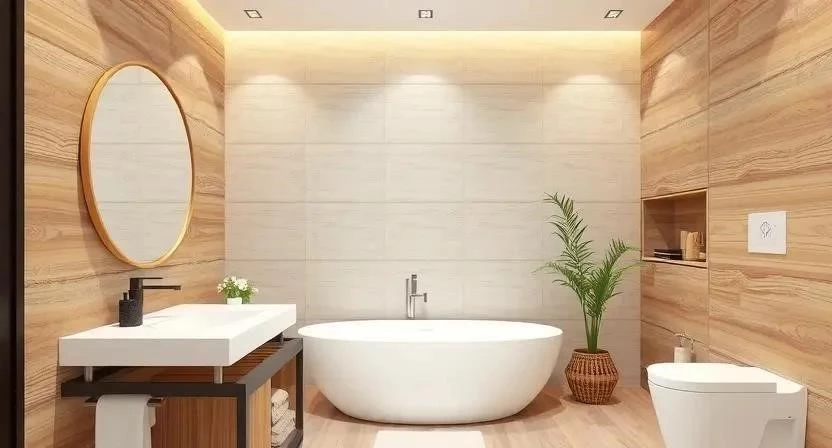 - Фактура: Имитация дерева или камня придаст ванной комнате более естественный вид.