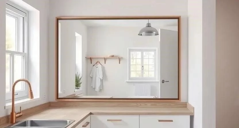 Выбор формы и размера зеркала зависит от площади кухни, расположения и стиля интерьера. Для маленькой кухни лучше подойдут зеркала прямоугольной или квадратной формы, которые визуально расширят пространство. Большие зеркала могут создать эффект бесконечности, но важно, чтобы они гармонично вписывались в интерьер. Я считаю, что зеркало над мойкой должно быть не слишком большим, чтобы не создавать дискомфорт при мытье посуды. Если кухня выполнена в современном стиле, можно выбрать зеркала необычной формы – круглой, овальной или асимметричной.