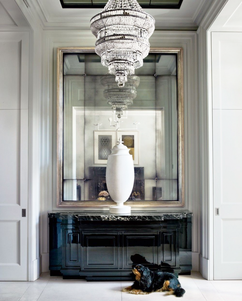 Современные интерьеры прекрасно гармонируют с большими напольными вазами. Необычные формы хрустальных ваз без всяких дополнений эффектно украсят комнату. Если этот вариант оформления слишком своеобразен, можно остановиться на вечной классике. Стены нежных пастельных цветов, мраморный камин, подвесную хрустальную люстру и зеркало в золотом обрамлении тонко подчеркнет толстая хрустальная ваза с букетом пионов.