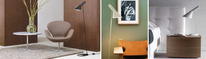 История напольных светильников AJ компании Louis Poulsen, ставших истинной иконой стиля, берёт своё начало в 1960 году в Копенгагене. В то время в столице Дании открылась 5-звёздочная гостиница Radisson Blu Royal Hotel и специально для неё компания Louis Poulsen в лице дизайнера Арне Якобсена создала серию светильников AJ (инициалы автора Arne Emil Jacobsen).