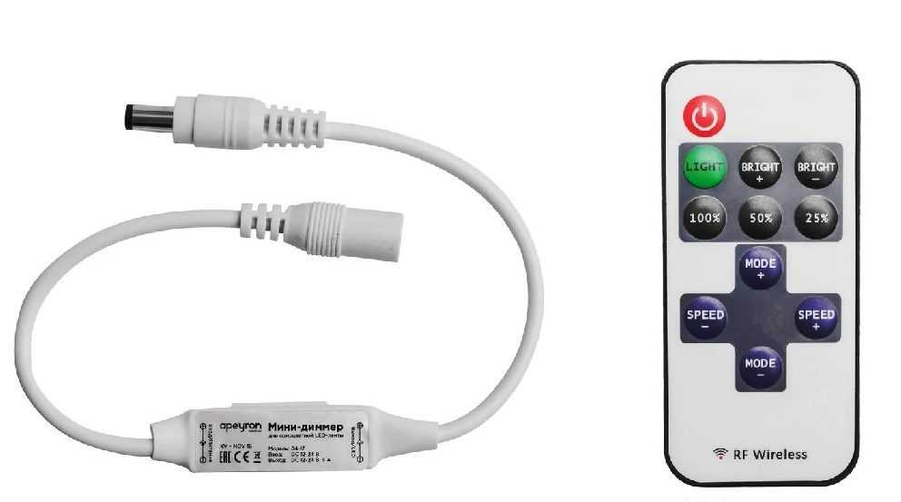 Является миниатюрным, самым хорошим радиоуправляемым устройством, благодаря использованию которого можно плавно перевести монохромную smd ленту в несколько разных режимной свечения (около 25 режимов). Комплектуется пультом ДУ, который позволяет переключать режимы и самостоятельно корректировать работу осветительных приборов дистанционно.