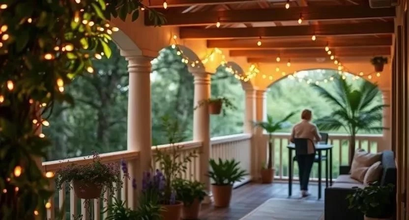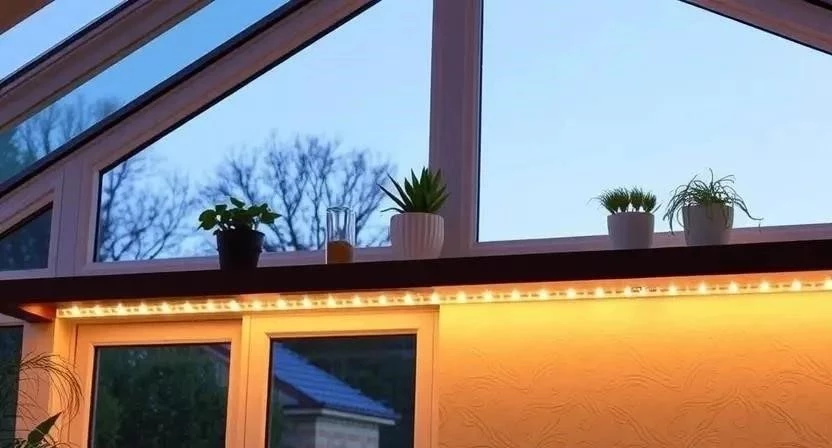 Один из моих любимых приемов — использование светодиодной ленты, спрятанной в нише потолка. Это создает эффект «парящего» потолка и дает мягкий, рассеянный свет. Еще один вариант — гирлянды для лоджии, развешанные хаотично по одной из стен. Это моментально превращает обычный балкон в праздничную зону.