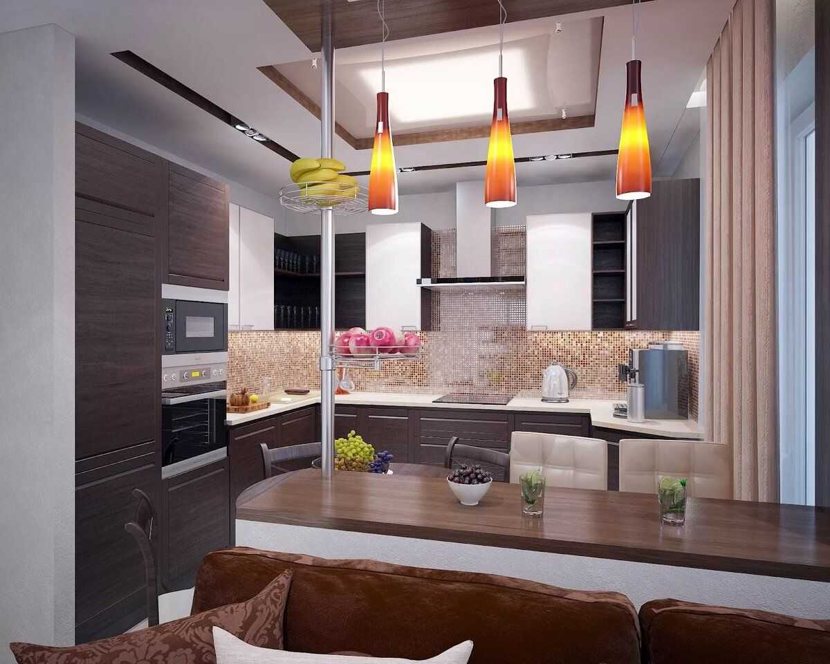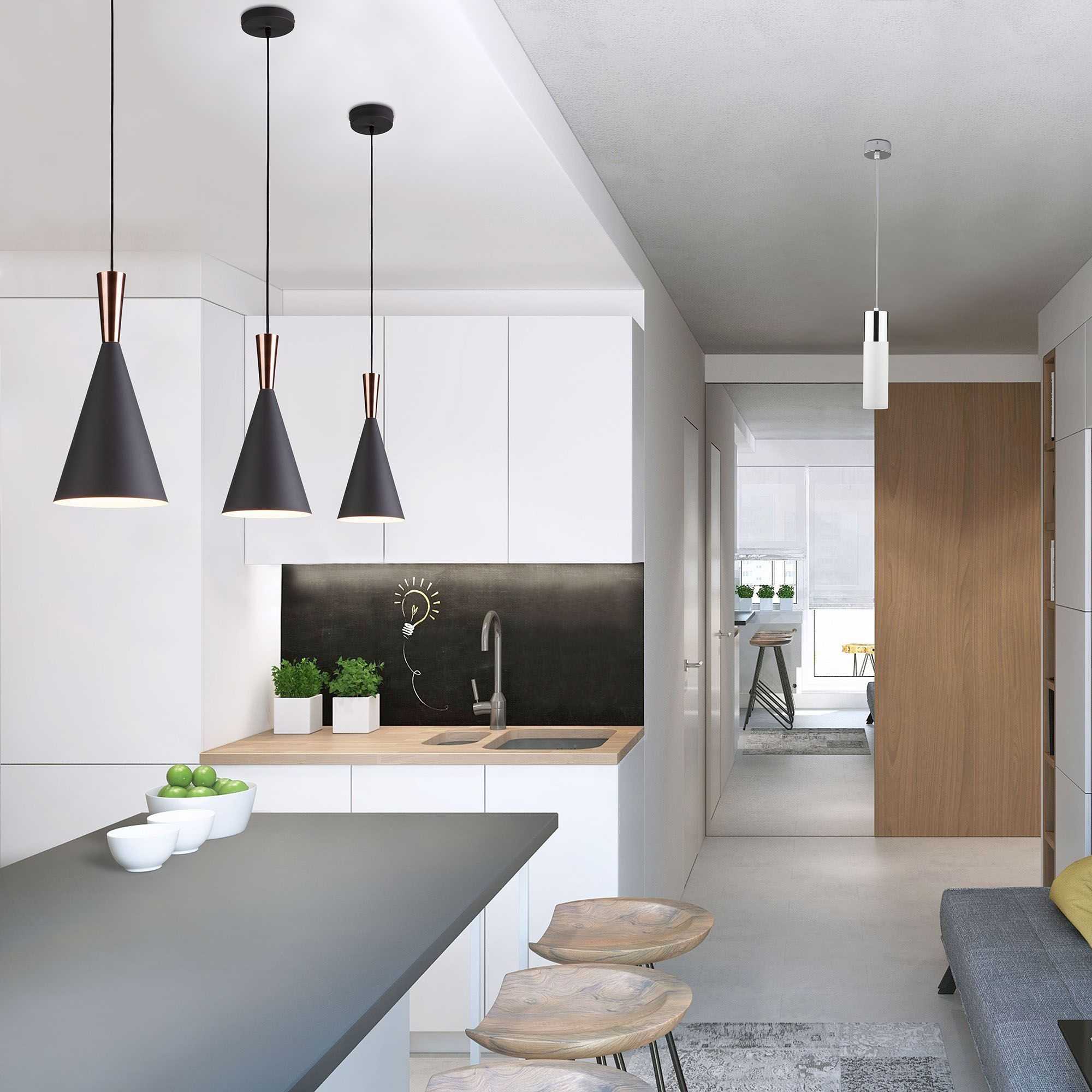 Отдельного внимания требуют кухни, совмещенные с другими зонами в квартире. Кухня-гостиная по умолчанию достойна отдельного освещения.