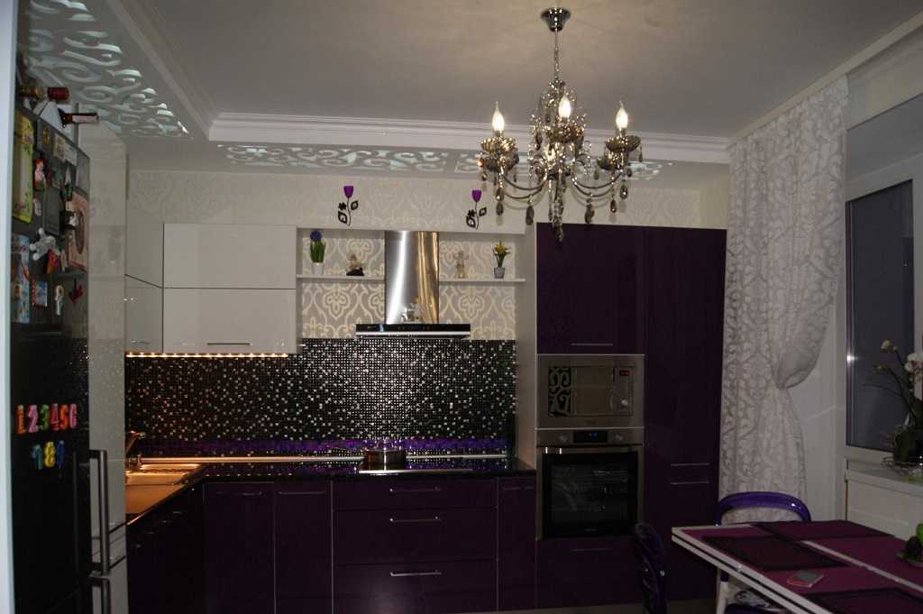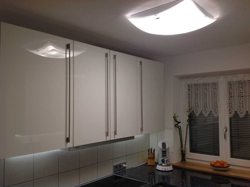 В большей степени на выбор влияет дизайн и площадь кухни. В маленькое помещение нежелательно устанавливать массивные подвесные люстры. Органичнее будут смотреться потолочные и точечные лампы. Глянцевые натяжные потолки часто делают вместе со светодиодными лампами.